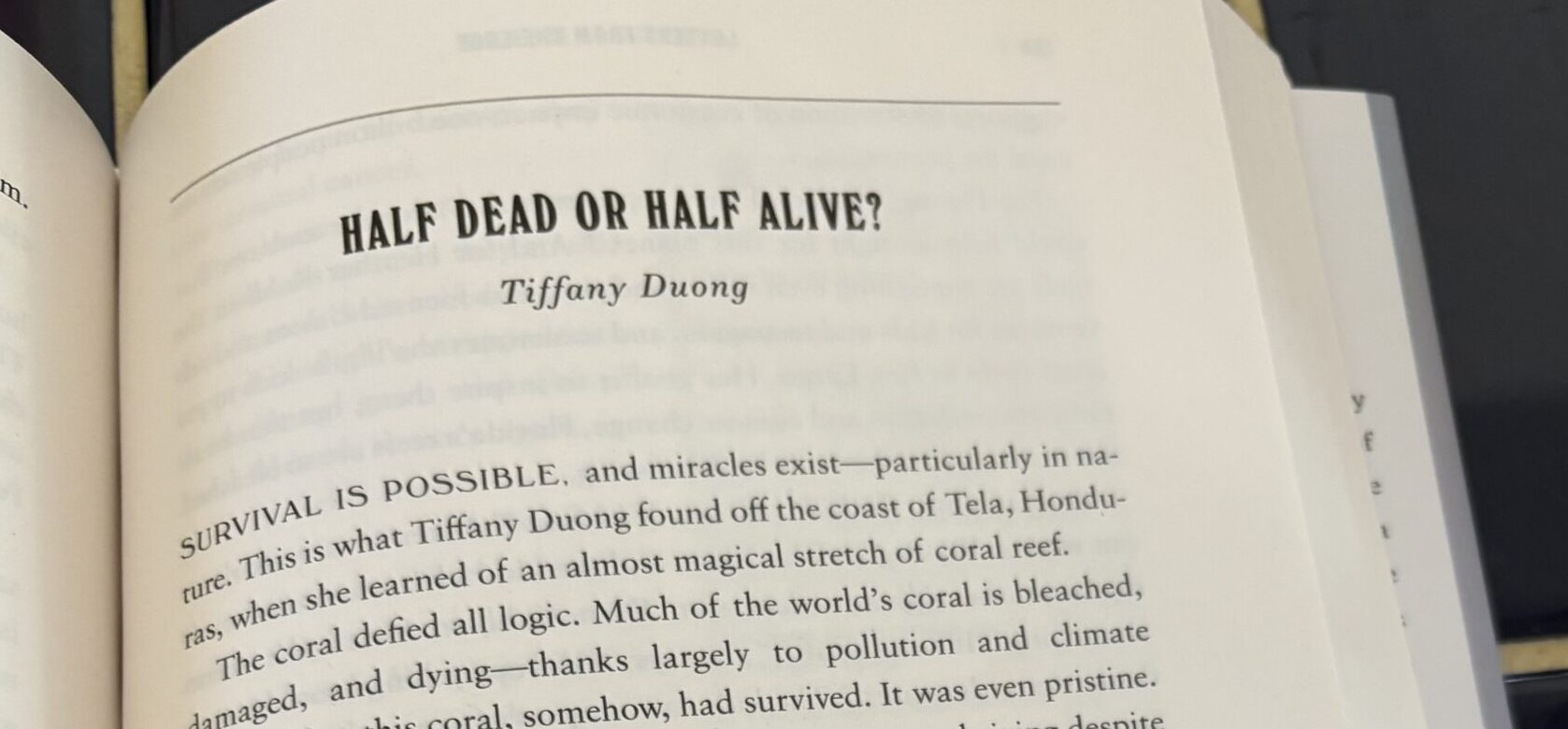 The title Jeff gave the chapter, Half Dead or Half Alive?, comes from the paired reactions of Heather and Tiffany, who struggle with the tension between half of the reef that remained alive and vibrant amidst the painful tragedy of the other half.