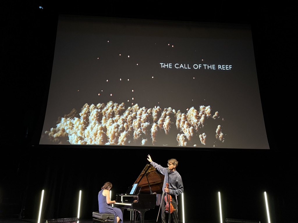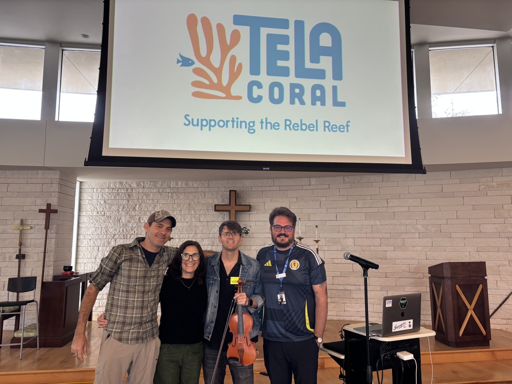 It had started raining in the afternoon, and I was worried about the weather keeping people home. But rather than deter the crowds, the water seemed to be part of the theme. Friends and family and people who had just heard about the concert started pouring into the theater. So many fabulous faces arrived to hear the story of Tela’s reefs and to immerse in the beautiful, transformative music. It was an absolute delight. The theater holds about 300 people and it was not-quite sold out, but very close! I loved seeing the students from the coral genetics lab at UT looking especially glamorous at the theater.