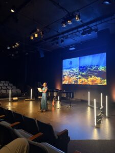 The panel following the show included Dr. Chrissy Wiederwohl, who studies Antarctic waters, and was moderated by James Ball, Director of the Academy. The first question he asked was, what does the sea sound like to you? Which is such a cool question. Chrissy talked about the instruments she uses to understand changes in the ocean. Antal talked about the peace he feels when he dives. Chad talked about the bacon sounds you hear, the crunching of thousands of animals. And I too a step back and said that I think the sea is saying that we need to pay more attention to it.
