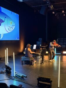 The next day we were off to College Station, where we played the Rudder Forum. It was a game day so seeing College Station all gussied up so they could trounce the other team gave a festive air to the town. The performance was a fabulous–and novel–collaboration between the Academy of Visual & Performing Arts and the Department of Oceanography. Earlier in the week, I had given a talk on science writing and coral and jellyfish to a class on science communication taught by Dr, Shari Yvon-Lewis, who said that the department had never had the opportunity to present a concert before. And that’s really what makes this project so fantastic; it brings together art and science in such a powerful way.
